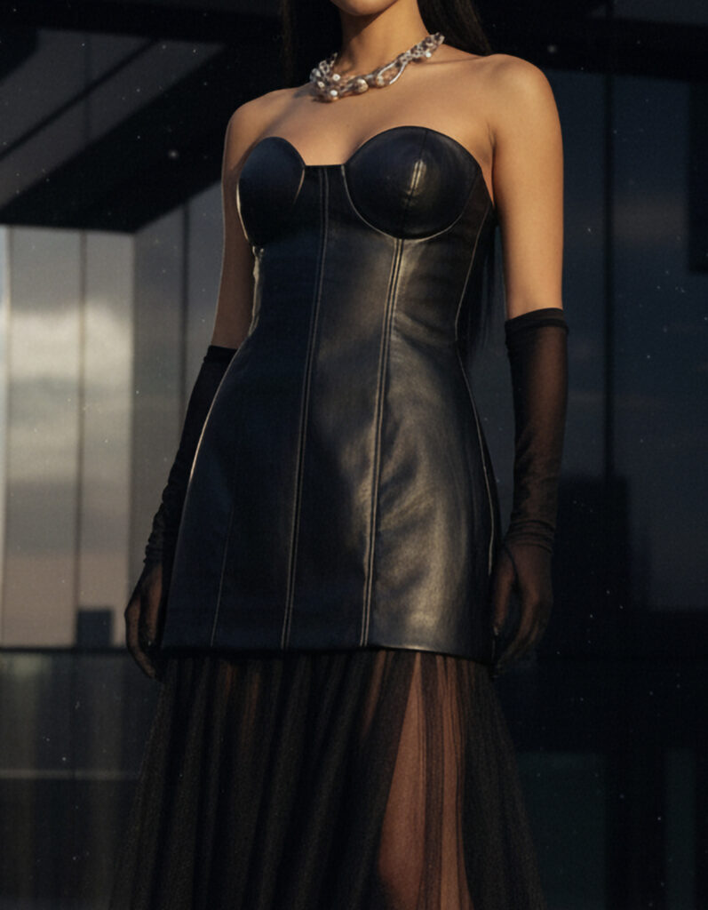 • Hand-sewn rhinestones detailing a statement dress, adding a ritualistic sparkle