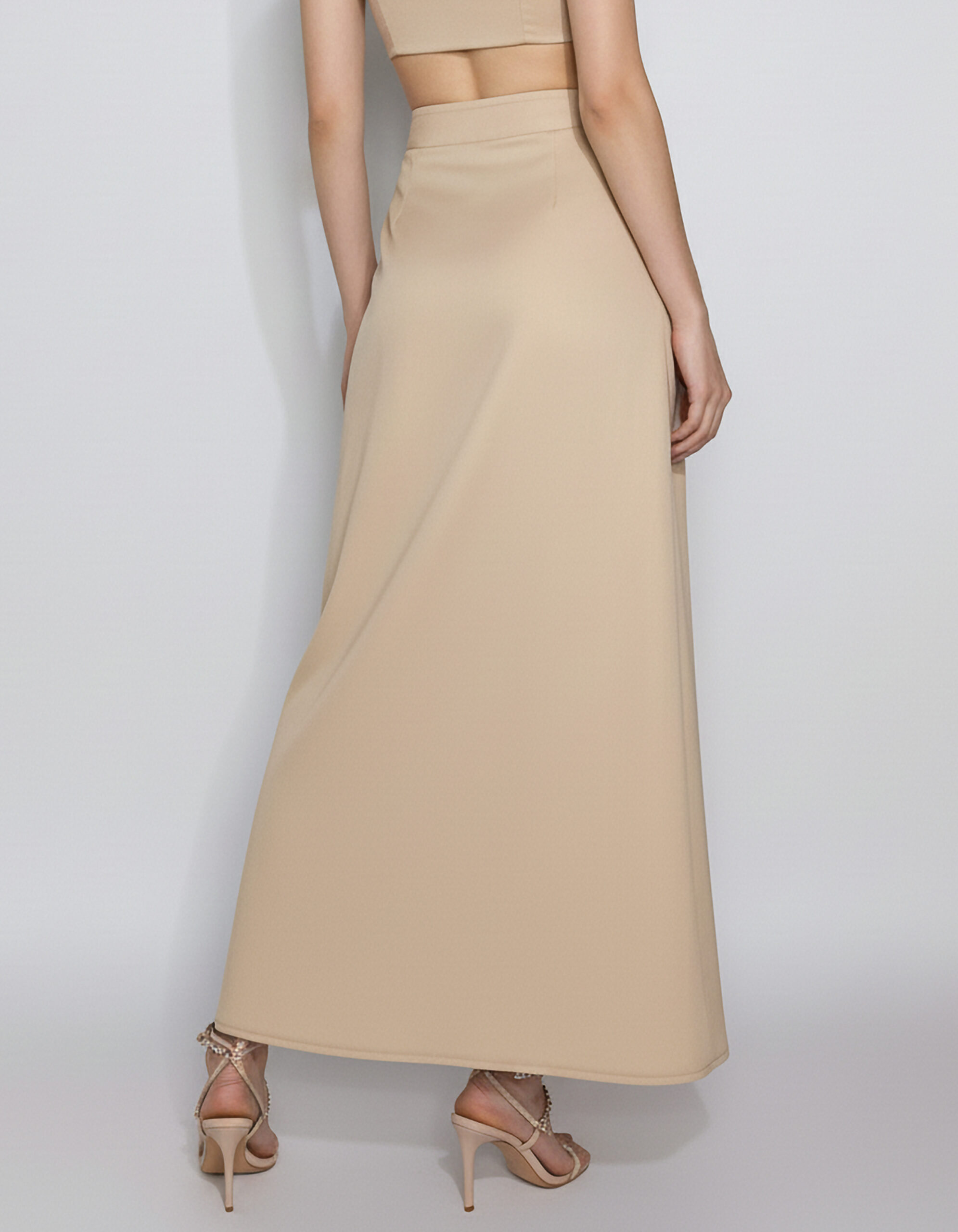 True to its heritage, the Axis Skirt is proudly designed and made in Lebanon, showcasing impeccable craftsmanship. The choice of gabardine material ensures durability while offering a soft, unlined finish for comfort. As a full-length piece, it invites layered styling options while maintaining its distinct personality. With its subtle sandstone hue, this skirt pairs effortlessly with neutral palettes or bold contrast pieces, making it a cornerstone in your wardrobe.