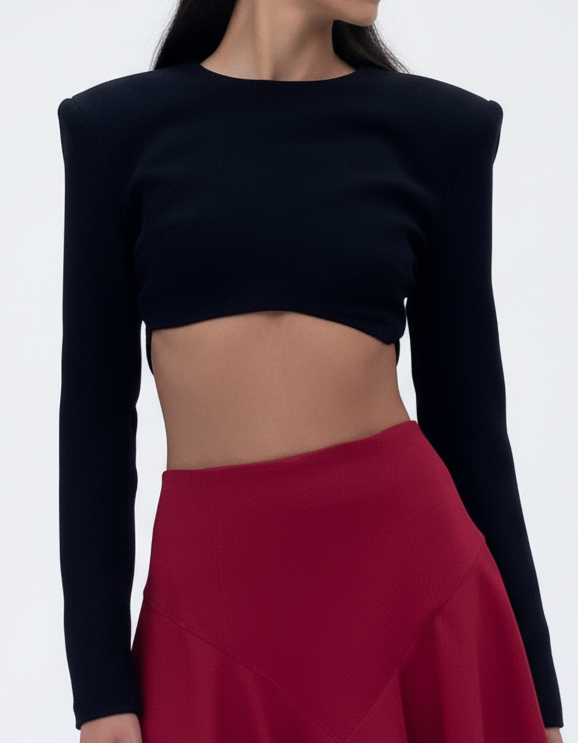 The Shadowcrest Top is a bold and striking piece that redefines modern sophistication. Crafted with meticulous detail, this cropped crepe top stands out as both a statement and a versatile wardrobe essential. Its sharp shoulders and clean front exude refinement and minimalism, making it a perfect addition to any contemporary outfit. Whether you’re dressing for a sharp sophisticated occasion or simply adding an edge to your look, this piece delivers effortless style and undeniable confidence.